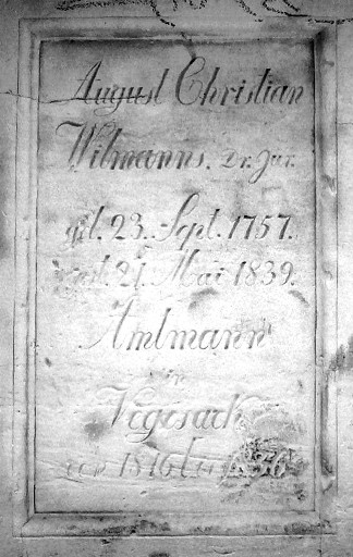 August Christian Wilmanns. Dr. Jur. geb. 23. Sept. 1757. gest. 21. Mai 1839. Amtmann in Vegesack von 1816 bis 1836